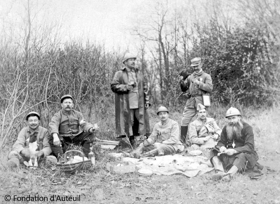 À la déclaration de guerre en 1914, bien que réformé en 1901, il se propose comme brancardier-aumônier militaire volontaire. Le 26 août 1914, il rejoint la 26e division d’infanterie où il fait preuve d’un courage magnifique pendant les quatre années qu’il passe au front. Il y reçoit six citations dont trois à l’ordre de l’armée.